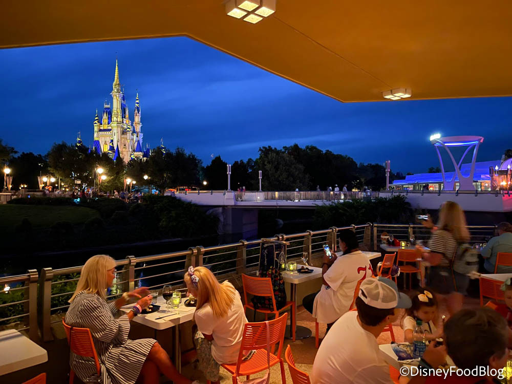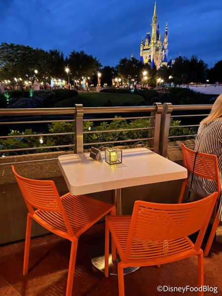 One important thing to know is that Cast Members escort guests to their seats. In other words, you generally won’t be able to pick what table or seats you get. It’s a luck of the draw type of thing. While all of the seats will generally provide you with a fantastic view of the Castle, those that are closer to the edge will obviously give you a greater view of the fireworks and a more unobstructed view of the Castle.