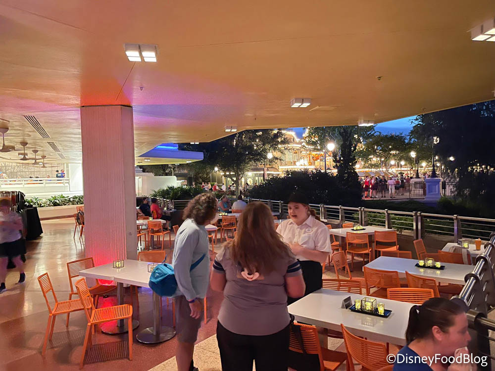 The first thing you’ll want to do upon arriving to Magic Kingdom is head to Tomorrowland Terrace to check in.