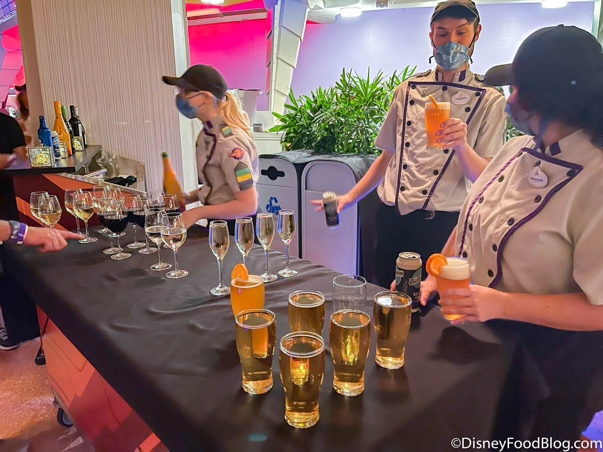 Upon checking in, the Cast Members will check your ID and you’ll be provided with a wristband or two. We were provided with one band indicating we were 21+ (and thus able to drink alcoholic beverages during the party) and another simply for the party.