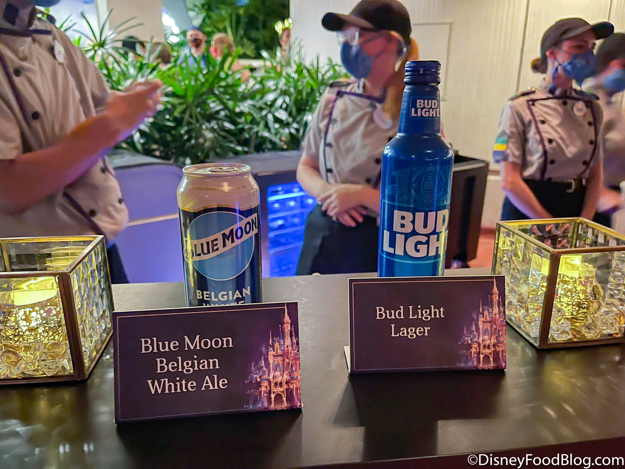…Blue Moon Belgian White Ale, and Bud Light Lager. Guests can grab 2 alcoholic beverages at a time.