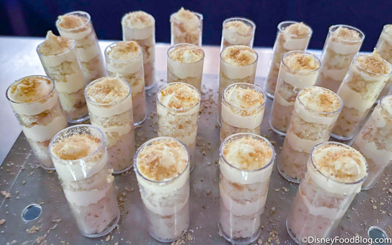 Next up is the Chilling Chamber Pop (made of vanilla crumbs, caramel buttercream, and graham cracker crumbs). This treat was good but VERY sweet! It tasted like we were eating butterscotch flavored frosting — which can be a good thing depending on what you like. Overall, it was buttery and had a fun presentation we think guests will enjoy.