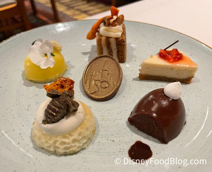 Dessert includes the Steakhouse 71 Chocolate Cake, which is described as “15 layers of whiskey-infused chocolate cake, chocolate mousse, and raspberries – one layer for every floor at Disney’s Contemporary Resort.” YES, PLEASE! Other dessert options are also available.