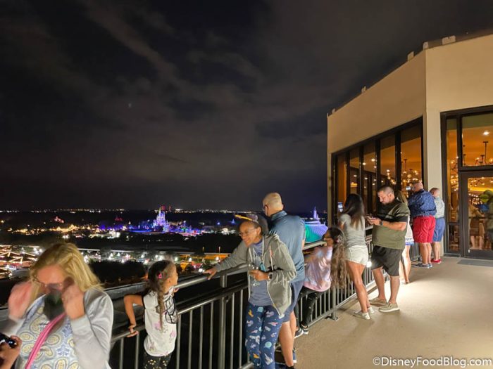 There’s another small room with just six tables that faces the back of the building. This is where you can see EPCOT and the Electrical Water Pageant (with its new 50th pieces!).