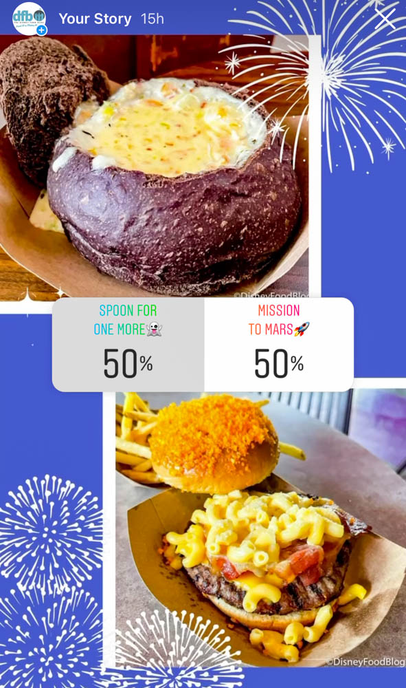 The cheeto dust-covered burger wasn’t quite enough to beat out the Haunted Mansion-themed bread bowl, though! The Spoon for One More beat the burger by 112 votes, with 6,741 votes against 6,629.