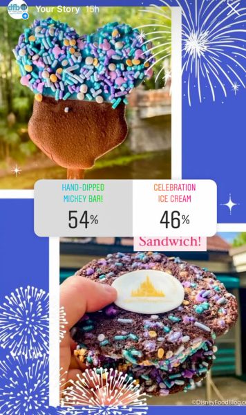 We’re sticking to the classics with the next one, and honestly we don’t know if we could choose between these two treats. It’s like picking a favorite child. Luckily our readers chose for us! It’s the 50th Anniversary Mickey Premium Bar at Drinkwallah against the 50th Celebration Ice Cream Sandwich from Dino-Bite Snacks. Both of them are found in Disney’s Animal Kingdom. Of the classics, the hand-dipped Mickey bar won out! It got 54% of votes to the ice cream sandwich’s 46%.