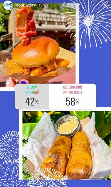 And the savory match-ups continue with the Pecos Bill Widow Maker Sandwich from Golden Oak Outpost (what?) going up against the 50th Celebration Spring Rolls from (where else?) the Spring Roll Wagon! The spring rolls won by a decent window here, with 58% of the votes. It’s very possible that the Pecos Bill sandwich lost because it just confused us too much — since, you know, it’s NOT at Pecos Bill Tall Tale Inn and Cafe.