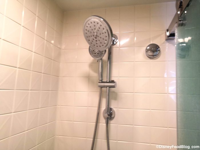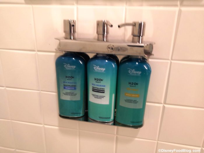 The shower has the same complimentary body wash, shampoo, and conditioner.