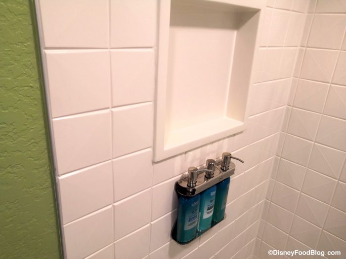 Inside the shower, you’ve got your body wash, shampoo, and conditioner!