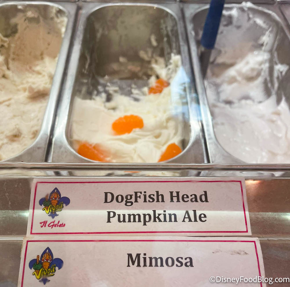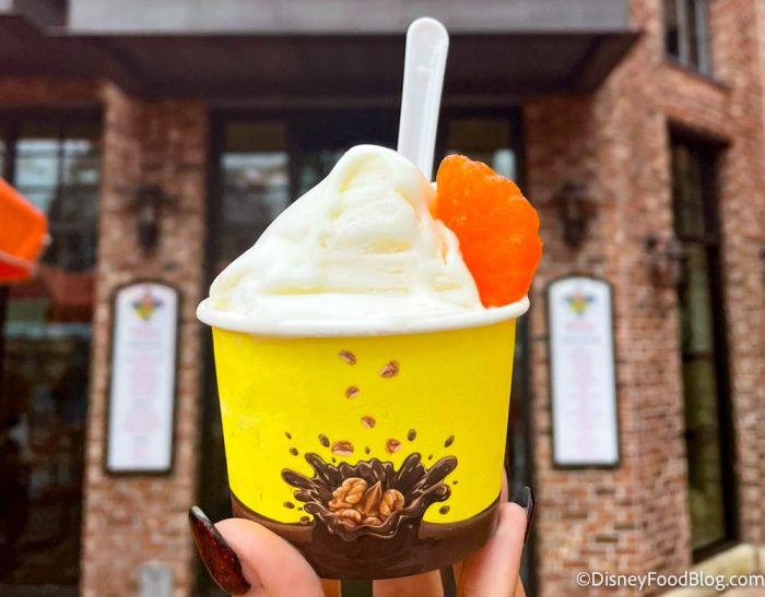 We’ll start with the new summer-y treat that we found, which is the Mimosa Sorbet. This one isn’t on the seasonal specials menu because, like we said, it’s not very fall-y. But that didn’t make it any less delicious!