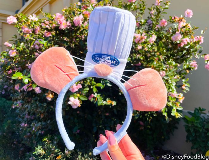 But your look won’t be complete without this Remy Ears Headband! There are plenty of mouse ears available in Disney World, but these might be the first rat ears we’ve seen. And there’s a little chef’s hat on top as well!