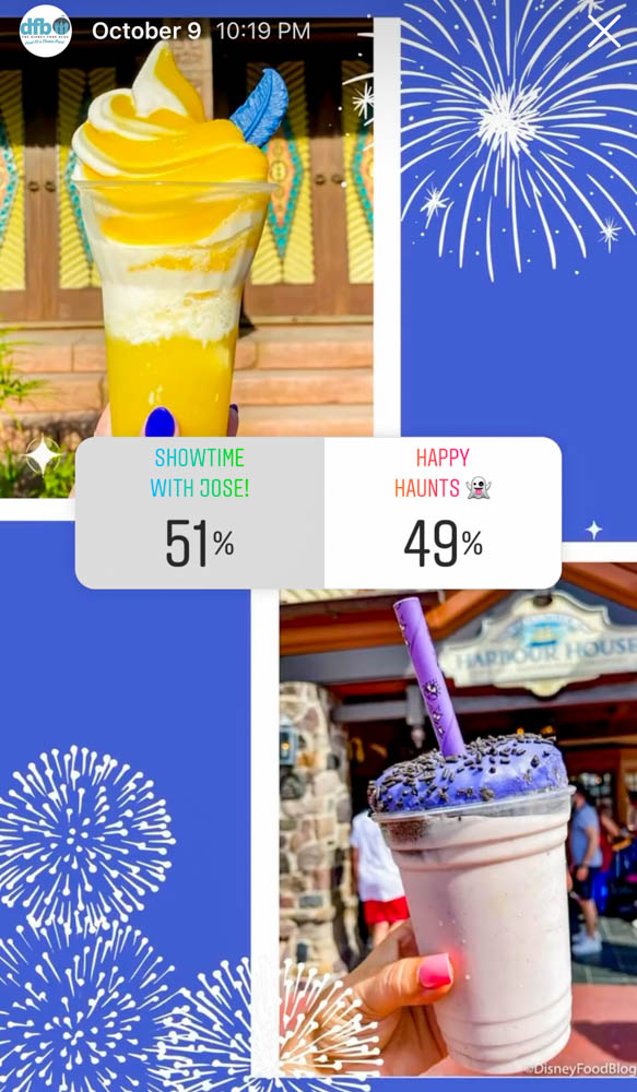 We saved the CLOSEST match-up for the end. It’s the Showtime with Jose from Aloha Isle against the Happy Haunts Milkshake from Columbia Harbour House. The donut-topped milkshake came close to winning, but Showtime with Jose ended up sealing its victory with just a 2% lead! Showtime with Jose has been a surprisingly strong contender, especially since it wasn’t even our reporter’s favorite 50th-themed drink at Aloha Isle.