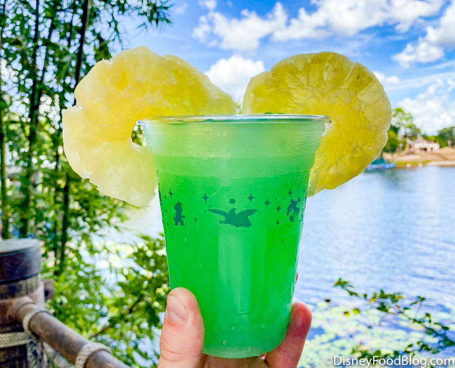 These are both Dole Whip Pineapple topped with a sour-apple flavored syrup, except the Lion’s Lair has the addition of Parrot Bay Coconut Rum. However, we felt like we barely got any rum in ours, so that was disappointing. Like the Firefly Appletini, this was also WAY too sour! The green apple flavor completely overpowered the Dole whip, so it was pretty much all we could taste.