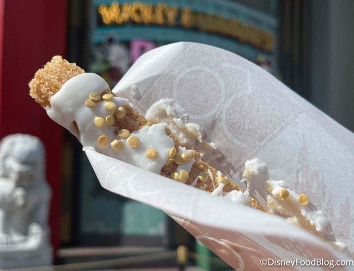 Well, for starters, we thought the Glimmer and Shimmer Churro was really pretty! The gold sprinkles are a nice touch and if you catch the sun just right you can see how shimmery this treat is.