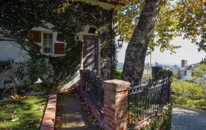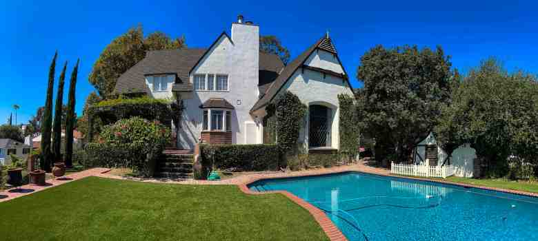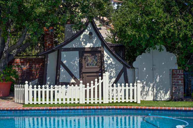 The house was designed by architect Frank Crowhurst, who also contributed to the Walt Disney Co. headquarters. It’s 6400 square feet with 5 bedrooms, a projection room, a library, a pool pavilion with dressing rooms, and a pool house. It’s made in the French-Norman style of architecture.