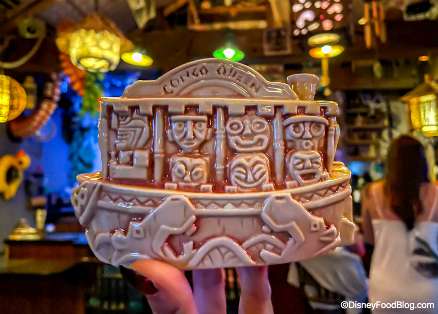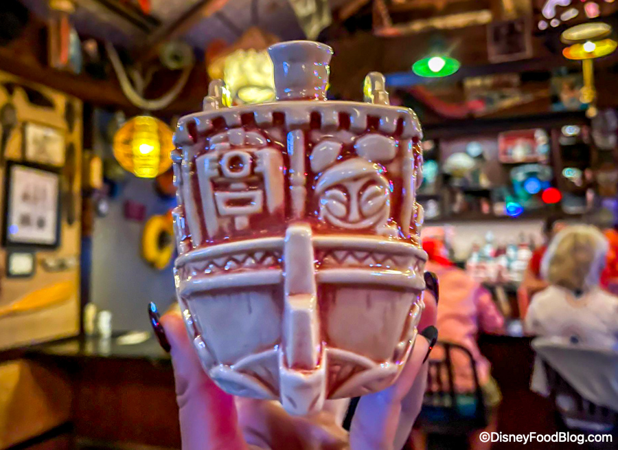 If you want to buy this tiki mug though, you also have to purchase the special tiki drink that comes with the mug. You can’t just buy the mug without buying the drink! But, if you don’t drink alcohol, don’t worry — there is a non-alcoholic option that goes along with this mug, too!