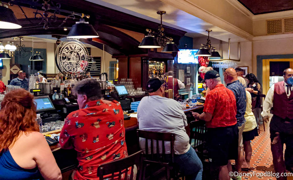 This could be due to the fact that Boatwright’s Dining Hall is not currently open at Disney’s Port Orleans — Riverside…but honestly, most of the people here were here for Bob. Some people even had t-shirts and signs celebrating his return!