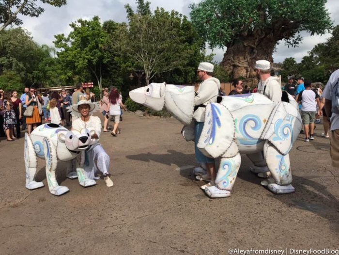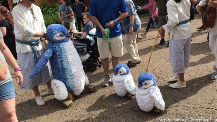 Cast Members maneuver these puppets around to greet guests as musicians accompany them. The puppets include reindeer, foxes, polar bears, penguins, and more, and they are SERIOUSLY adorable.
