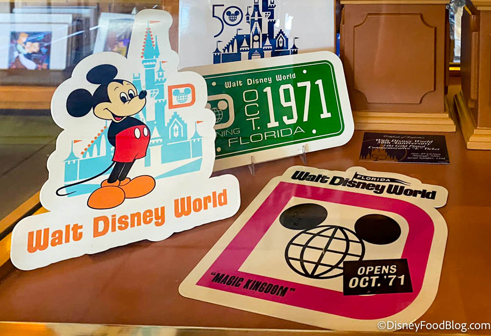 There’s one with the Cinderella Castle and Mickey Mouse, one with the original Disney World logo (that even says “Opens Oct. ’71”!), and another that looks like a license plate.