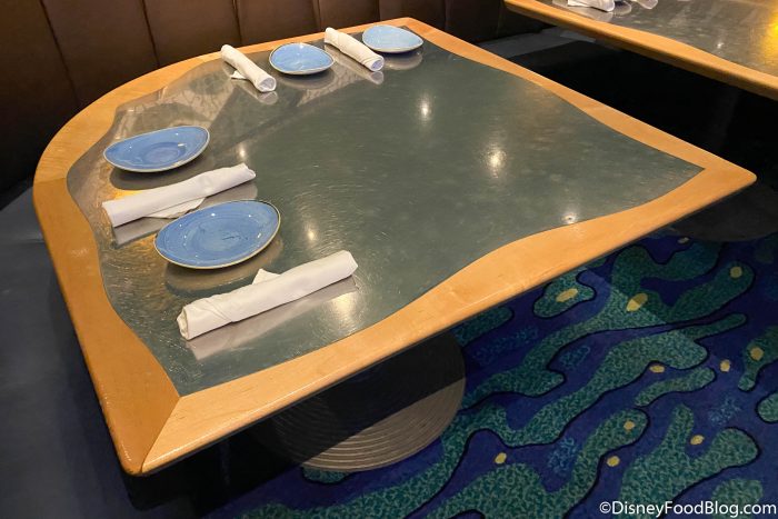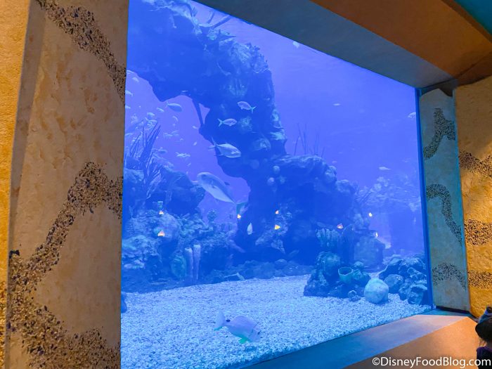 Pro tip! Ask your server for a Fish Spotting Guide! Our Cast Member mentioned that it might be slightly out of date, but it was still fun and helpful to use when looking at the passing fish. These used to be handed to each table as they were seated along with real menus.