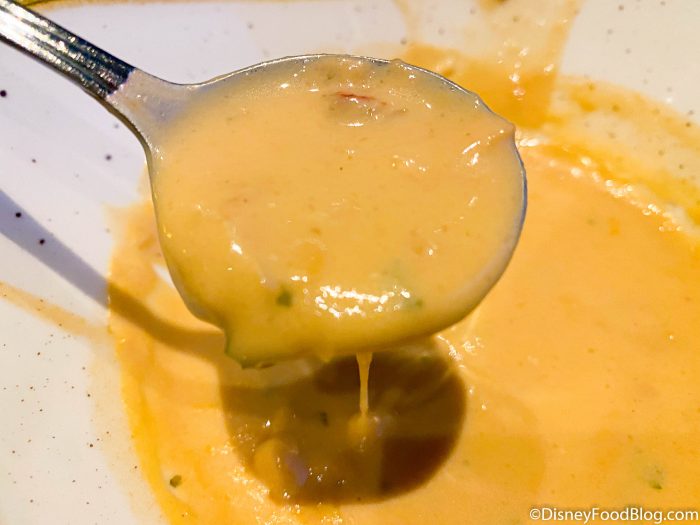 This was our favorite thing of the whole meal! It was super creamy and buttery with solid chunks of lobster throughout. Our reporter is not a big seafood person, but she still loved this! Be warned — it’s very rich! It’s basically a lobster and sherry flavored bowl of cream (like that’s a bad thing!).