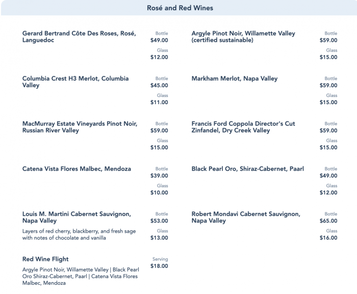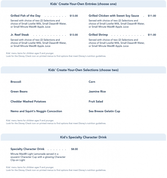 Take a gander at the Coral Reef menu. As we mentioned, you’re going to see a HEAVY focus on the seafood. Let’s hope we don’t get any side-eye from the fish in the tank while we nosh on our seafood selections!
