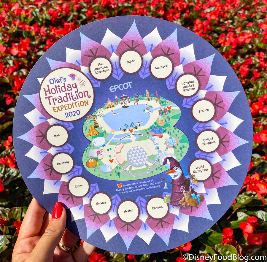 Last year, a brand-new scavenger hunt called Olaf’s Holiday Tradition Expedition was introduced in EPCOT. Olaf had gathered (and lost) holiday traditions around the world, and he was hiding in each World Showcase pavilion. Kids (and adults!) could hunt for Olaf in each of the countries and learn about holiday traditions around the world along the way.