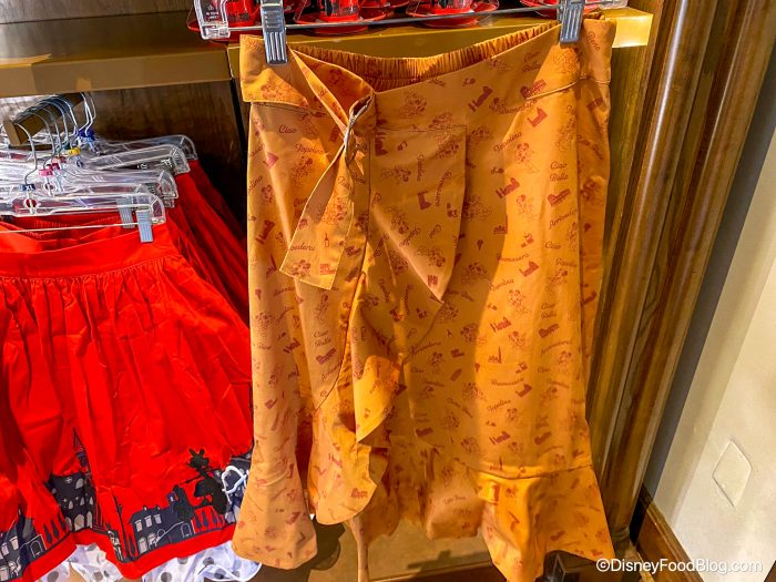 Over at La Bottega Italiana, you’ll find the new Italy Minnie Skirt! This skirt is a burnt mustard color with a belt, light frills on the edges, and a pattern that features Mickey & Minnie Mouse as well as Italian landmarks and phrases.