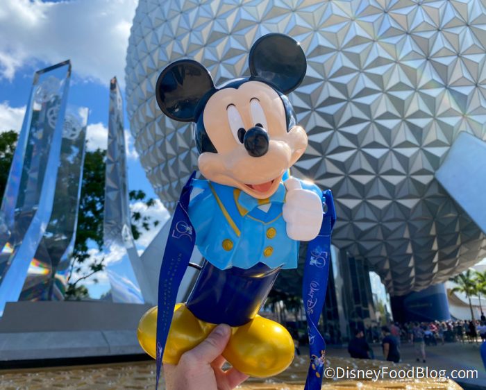 We also saw him at the popcorn stands in EPCOT. You can find the Mickey popcorn bucket at popcorn stands around Walt Disney World.