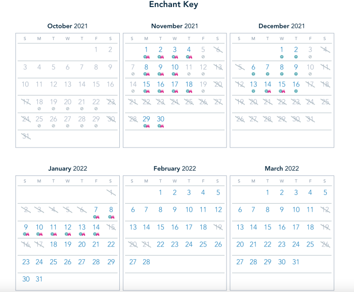 Finally, let’s check in on the Imagine Key park pass availability. There are still some dates left to visit both parks this year, but the calendar will likely fill up as we get closer to December.
