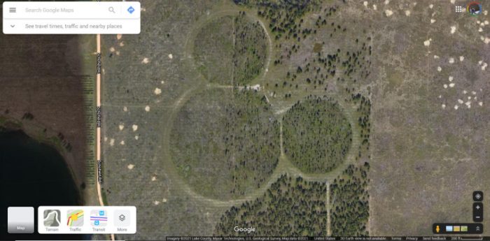 Over on Google Maps, look at Disney World in the satellite view and you might spot a Hidden Mickey! It’s located about 20 miles from Disney World (for reference, Magic Kingdom is in the right corner of this screenshot). Do you see it?