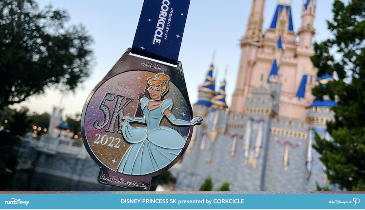 Runners who complete the Disney Princess 5K will be rewarded with a 5K medal featuring Cinderella running in her ball gown.