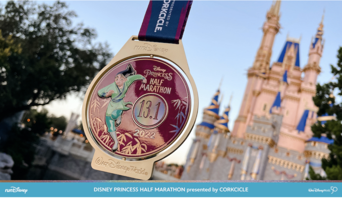 The runners of the Disney Princess Half Marathon will get the medal below featuring Mulan sprinting like a warrior.