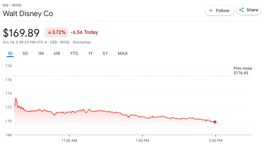 At the moment, according to Google, Disney’s shares are priced at around $169.89 per share.