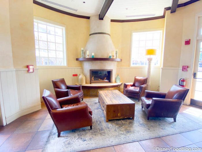 Inside there are lots of European details and a little waiting area with a fireplace and some candles.