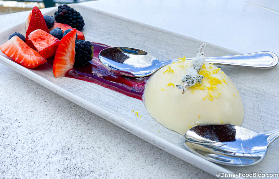 And for dessert, we tried out the Lemon Panna Cotta for $9. This gorgeous treat had Candied Thyme with it!