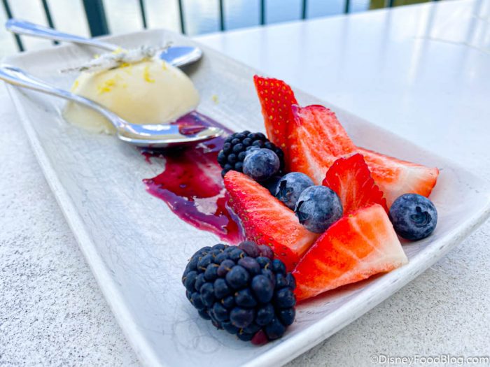We tasted this way back when Terralina first opened in 2018 and enjoyed it. Panna Cotta can be a love it or leave it dessert for many (we have all too frequently heard it referred to as just milky Jello!), but done right, it can be a great end to a meal. The Panna Cotta was DELIGHTFUL and very light. The lemon flavor was prominent in a bright citrus-y way but without being sour. Add the fresh fruit and you’ve got an AMAZING bite. We thought this was the perfect way to end the meal with something sweet but not too filling.