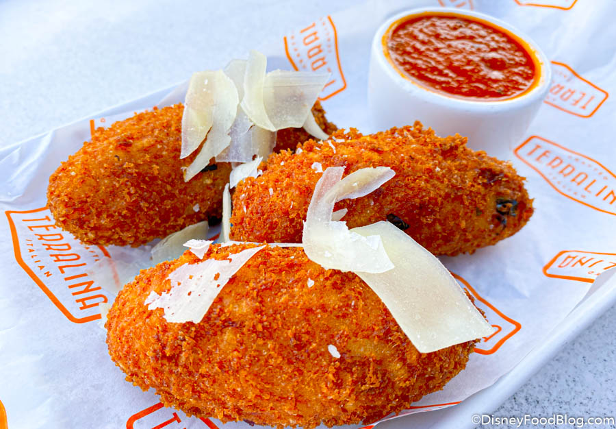 But why just snag one appetizer when you could snag two? Let’s try out the Mozzarella-stuffed Rice Balls for $15.