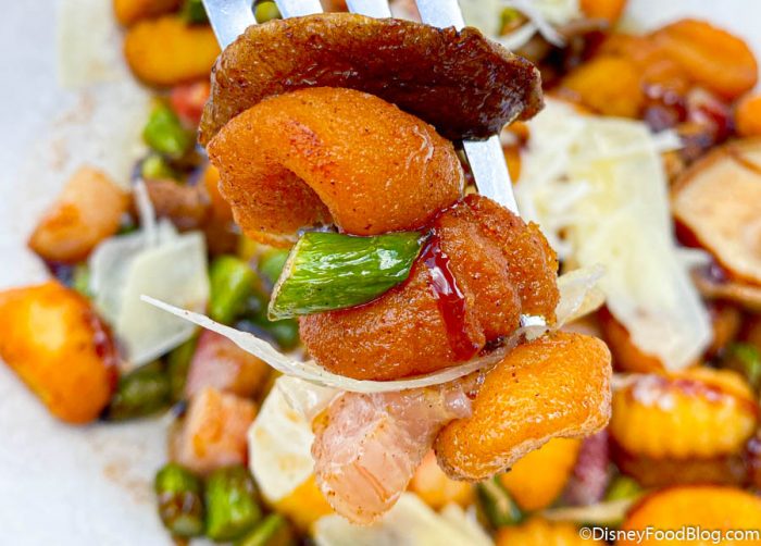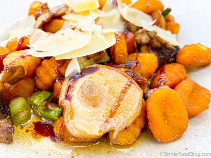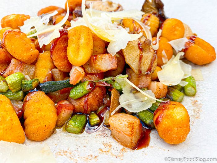 If you tend to like saucier dishes, this might not be for you. The “sauce” is really just butter, so it’s lightly dressed in it, meaning you won’t have a thick sauce to sop up your food in. The drizzle and butter were enough for us but the gnocchi could seem on the dry side to some folks. We’d also say you can skip this if you’re hoping for a more traditional pasta dish.