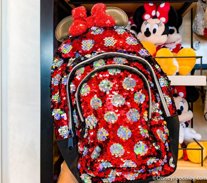In the same shop, we found a new Minnie Mouse backpack, which was covered in sequins!