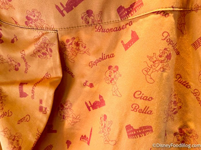 Over in the Italy pavilion, we found a new skirt that’s decorated with Italian scenes, plus Mickey and Minnie Mouse.