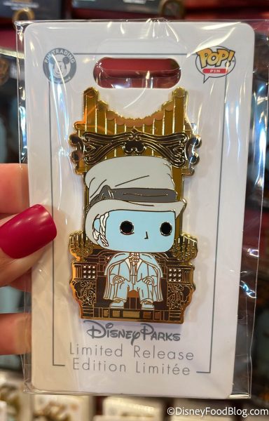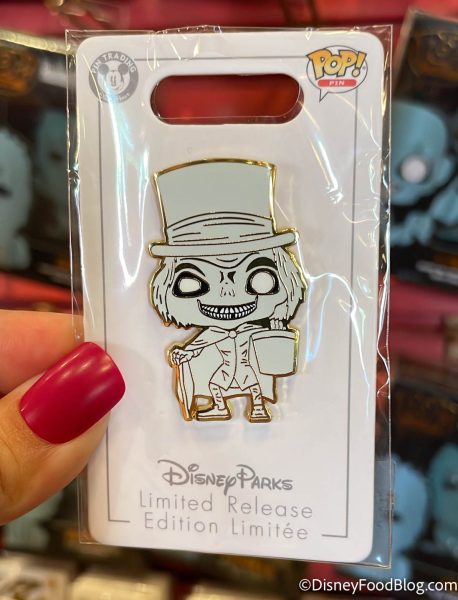There are new Funko Pop Haunted Mansion Pins for $15.99 each! This pin is a grinning Hatbox Ghost…