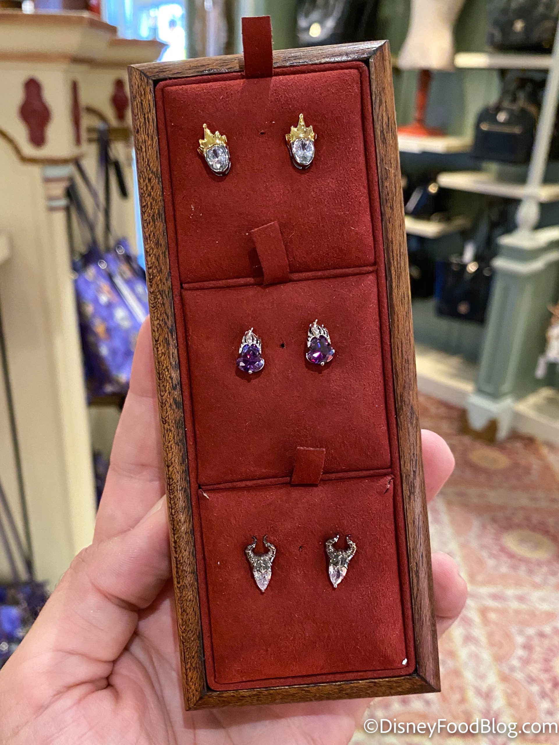 We also took a look at the new CRISLU Villains Jewelry Collection featuring earrings inspired by the Evil Queen, Ursula, and Maleficent. The top two pairs cost $125, while Maleficent costs $100.