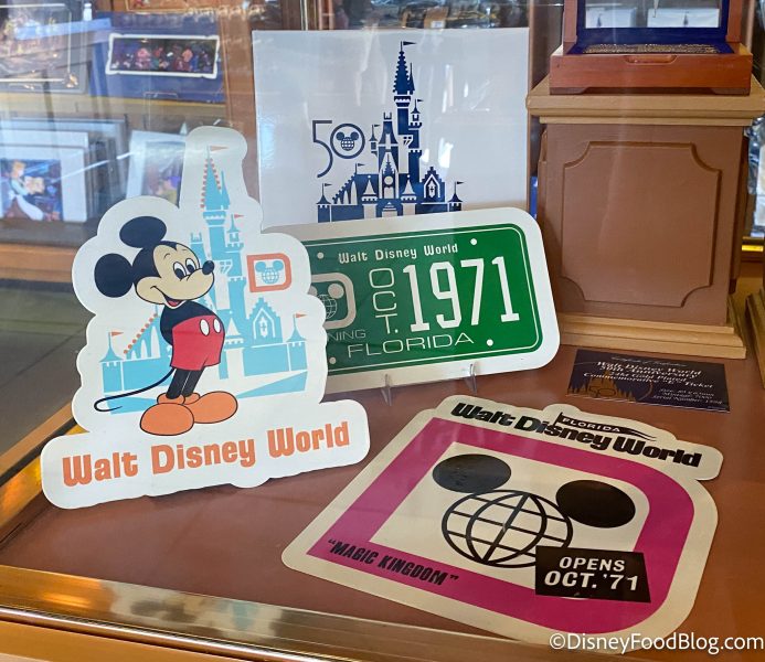 You can spot a retro Florida license plate among other Disney World nostalgia!
