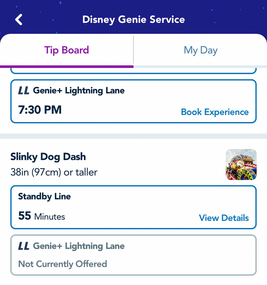 So if you’re hoping to reserve a spot in the Slinky Dog Dash Lightning Lane but it’s showing as “not currently offered” for the day, keep checking back to see if any more return times open up.