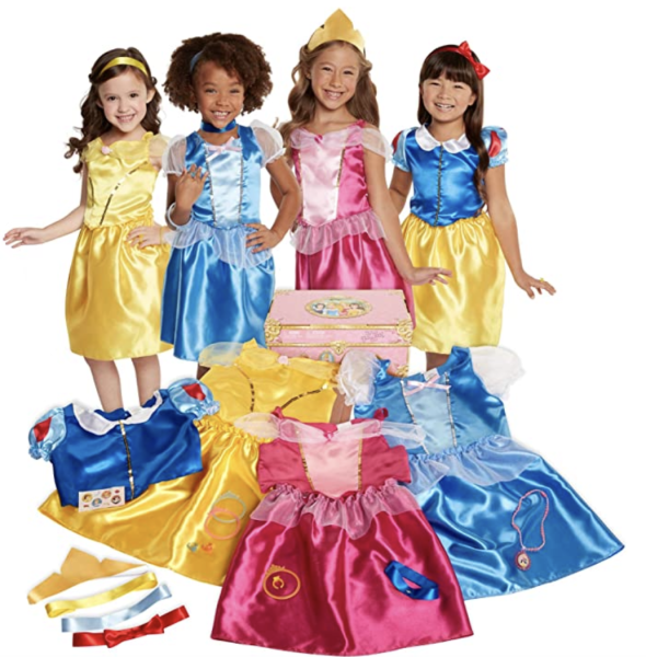 This 21 piece dress-up trunk is exclusive to Amazon and has Snow White, Belle, Sleeping Beauty, and Cinderella costumes for $34.99.