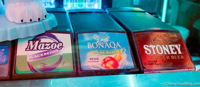 Flavors exclusive to the Disney Springs location are everything else on the list! Like Mazoe Blackberry from Malawi, Bonaqua Fruits Apple Pear from Germany, and Stoney Tangawizi from Tanzania…