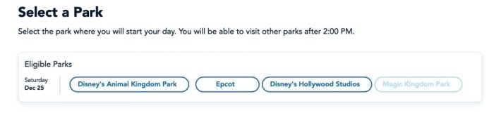For those still hoping to visit Disney World on Christmas day, you might want to make a theme park pass reservation as soon as possible!