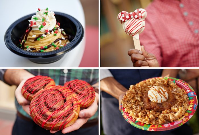 - Mickey Cinnamon Roll – Mickey-shaped cinnamon roll drizzled with red and green icing (available Nov. 8-Dec. 31)