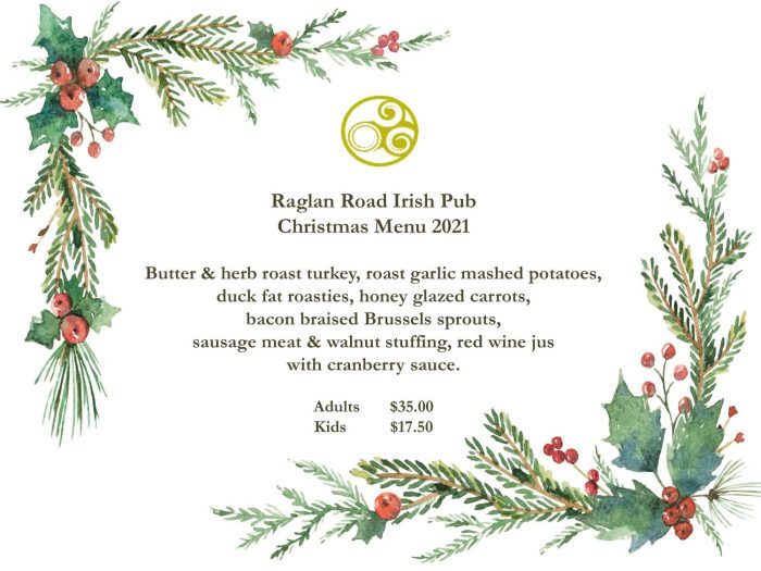 Like Thanksgiving, Christmas dinner will be served all day on Christmas Day. Raglan Road will also feature Irish music and dance entertainment during the evening dinner hours on Christmas Day. Also, just like on Thanksgiving Day, if you want to order from the all-day Raglan Road menu on Christmas Day, that will also be available.