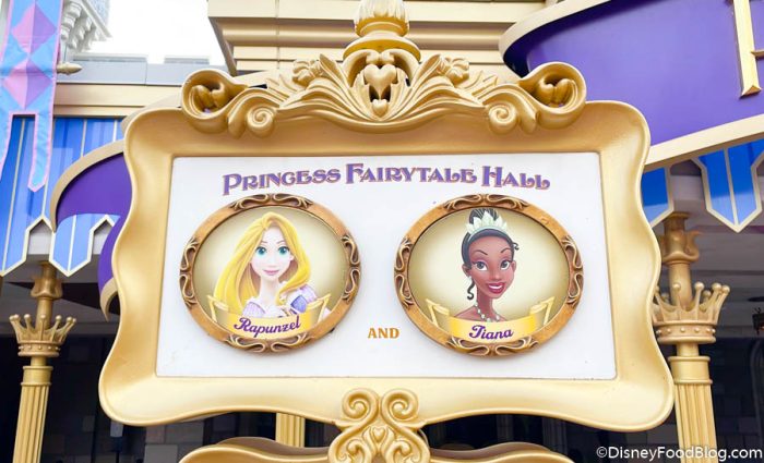 After meeting Mickey, we made our way to Fantasyland where we saw that four princesses ARE meeting for character sightings at Fairytale Hall!